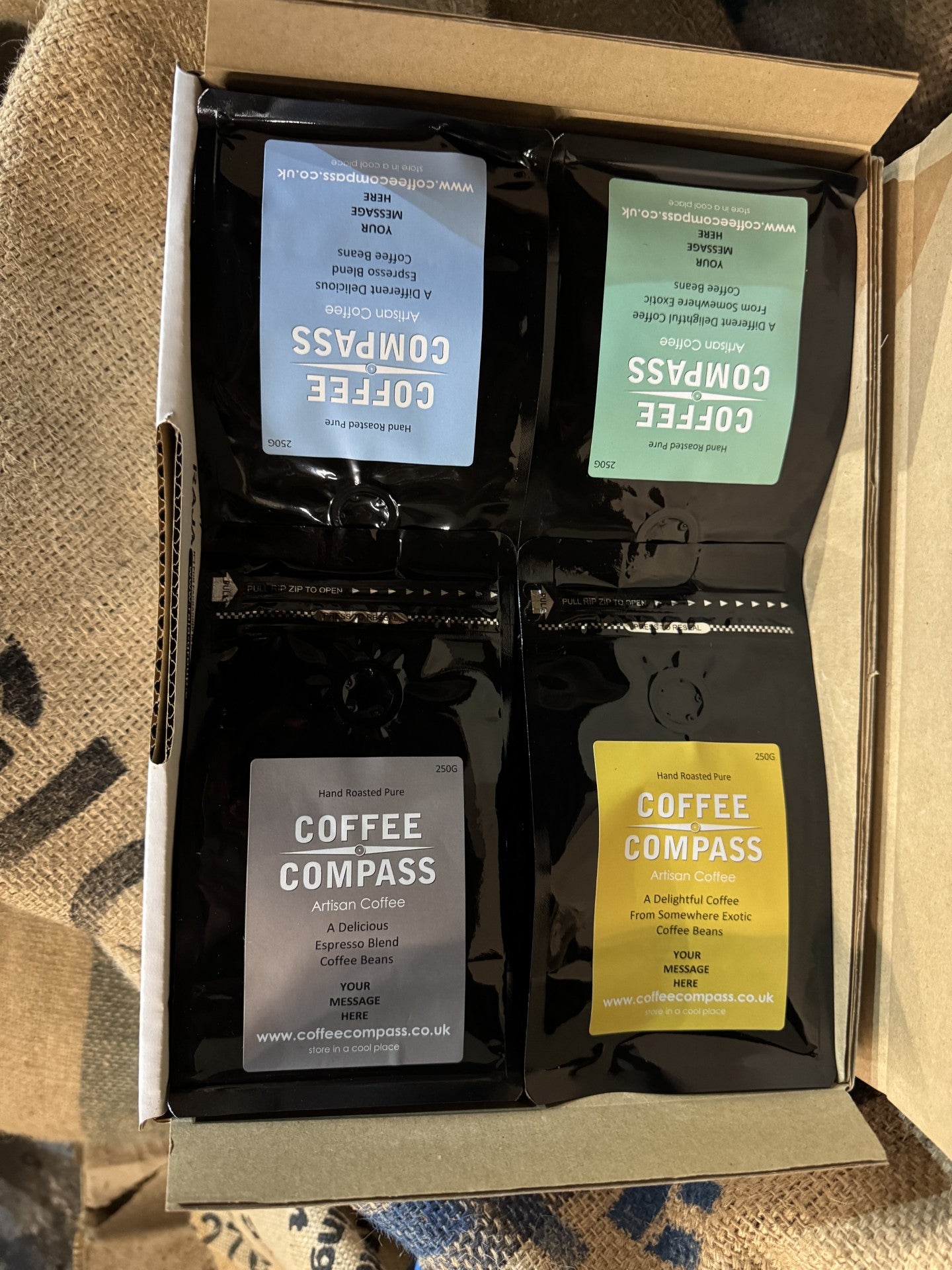 The box will contain 2 x 250g of different Espresso Blends and 2 x 250g of different Single Origin coffees. If you would like to specify the coffees within the pack, please message us and we will try to accommodate.